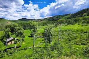 The East Ridge Ranch is an outstanding opportunity to purchase one of the best hunting ranches in Northern Colorado. Exceptional wildlife habitat management has been the focus of this ranch for decades, and the quality and quantity of animals harvested over the years is a true testament to that management. The ranch’s terrain is varied from thick dark timber, to open meadows, to groves of Aspen, and into the sagebrush hillsides. One of the ranch’s outstanding attributes is the number of springs providing a water source for wildlife. The ranch includes a beautiful 2-bedroom, 2-bath hunting lodge with a loft, used as the bunk room, with an open concept kitchen and great room overlooking the jaw-dropping views to the west and the Gore Range.